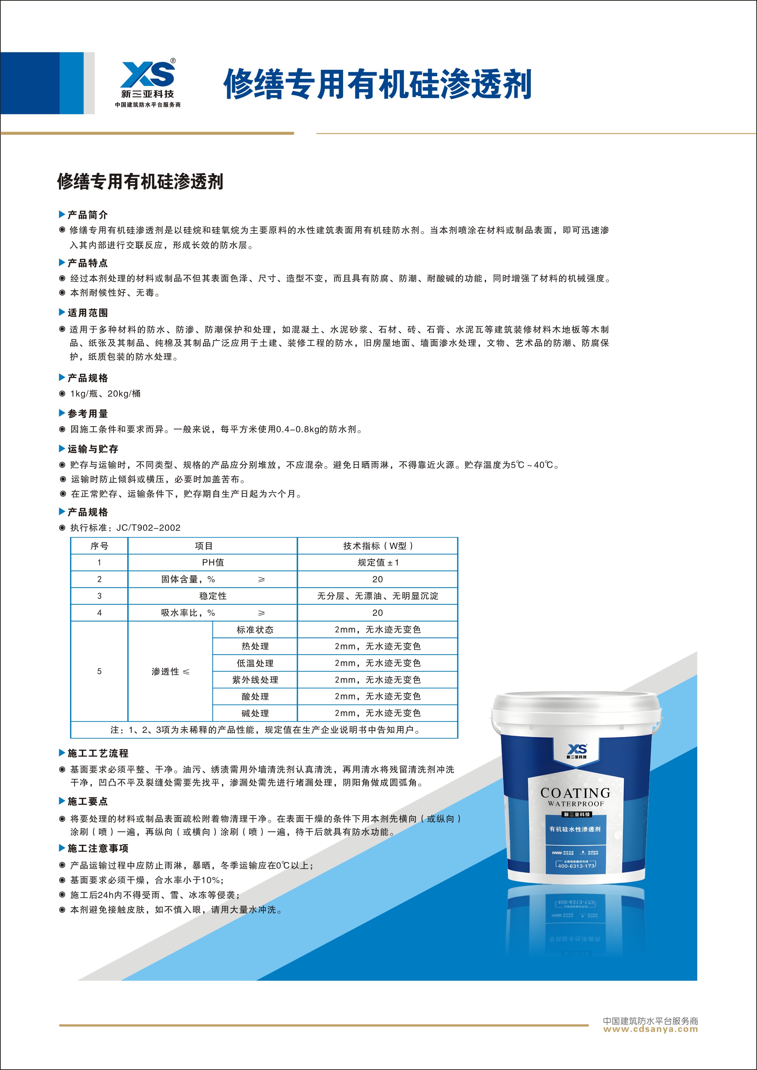 產(chǎn)品簡(jiǎn)介: 修繕專用有機(jī)硅滲透劑是以硅烷和硅氧烷為主要原料的水性建筑表面用有機(jī)硅防水劑。當(dāng)本劑噴涂在材料或制品表面,即可迅速滲入其內(nèi)部進(jìn)行交聯(lián)反應(yīng),形成長(zhǎng)效的防水層。 規(guī)格:5kg/桶